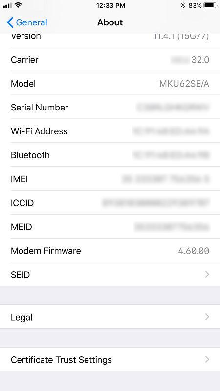 IMEI is short for International Mobile Equipment Identity. This 15-digit code is unique to your iPhone XS, and it is the key element when you want to unlock the phone.